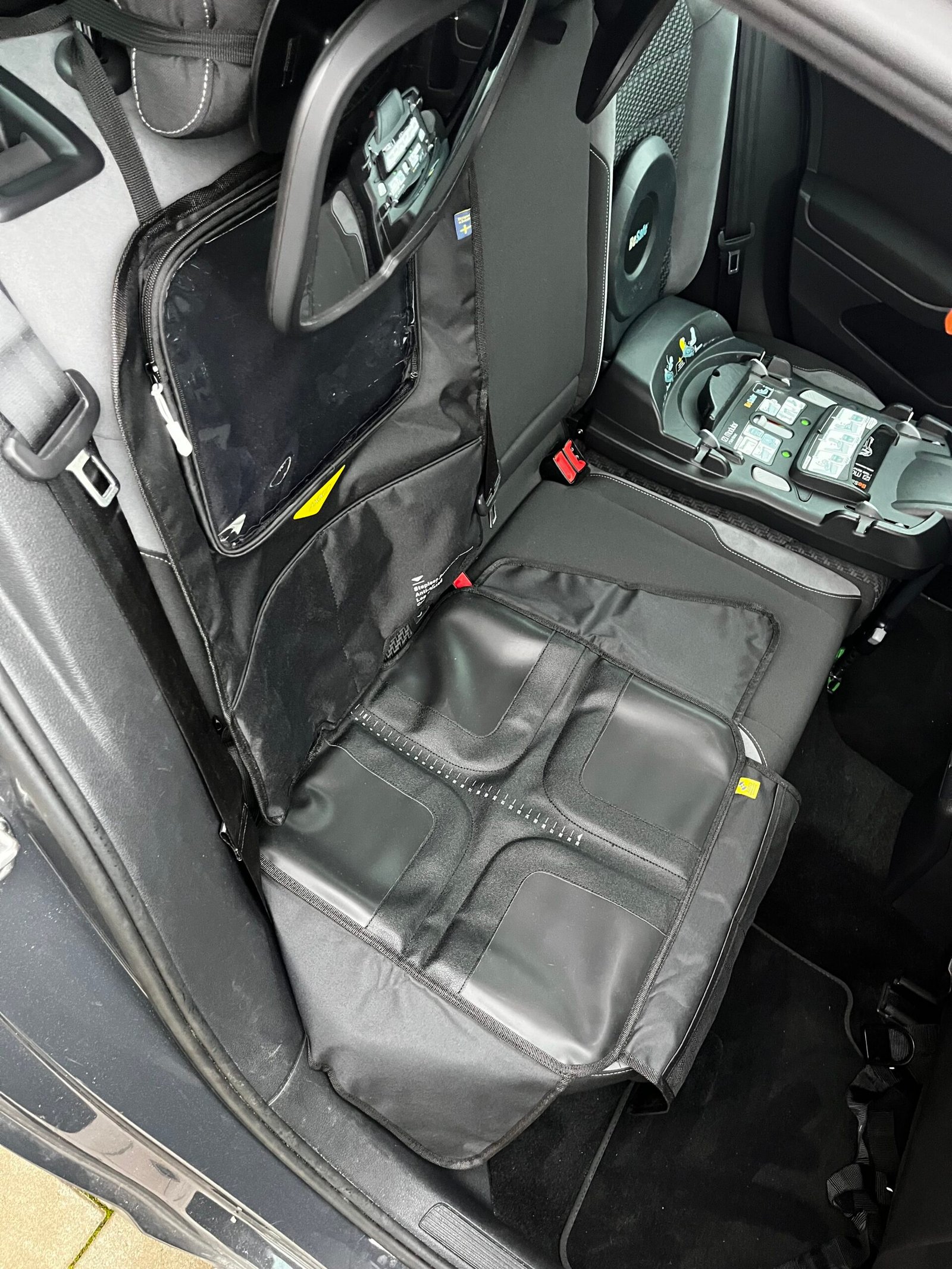 Tinka tiek priekinėse, tiek galinėse sėdynėse, nepriklausomai nuo to, ar jūsų automobilis turi Isofix jungtis. Lengvai prisitaiko prie įvairių automobilinių kėdučių, o du daiktų skyreliai ir planšetės laikiklis leidžia palaikyti tvarką net ir automobilyje.