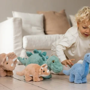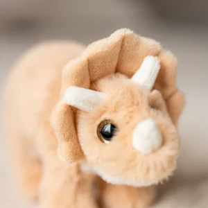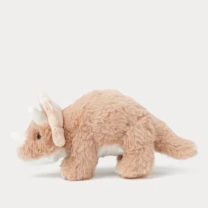 Šis abrikosų spalvos triceratopsas yra visų mažųjų dinozaurų mylėtojų svajonė. Su trimis ragais ir minkštu kūnu jis puikiai tinka tiek vaizduotės žaidimams, tiek jaukiam poilsiui.