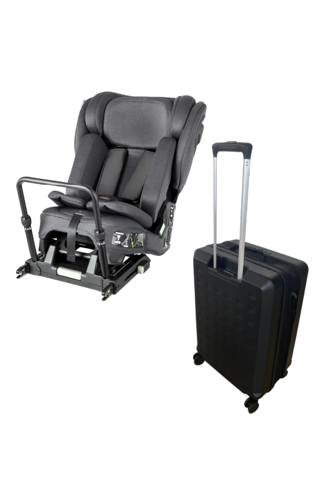 Į šį rinkinį įeina ir TinySeats Two lagaminas, kuris idealiai pritaikytas TinySeats Two kėdutei ir skirtas priduoti į registruotą bagažą skrydžio metu.